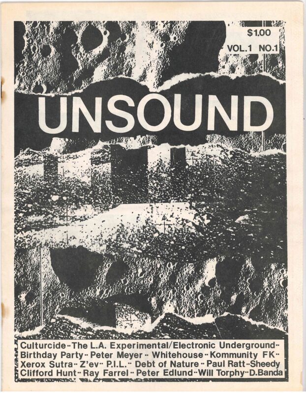 Unsound is a little bit different than the previous magazines. Published in the mid-1980s, this legendary Bay Area magazine focused on industrial sound art and experimental music. It was founded by William Davenport, a documentary filmmaker, writer, teacher, and member of the experimental noise band Problemist. According to an online article about the zine, Unsound “focused on the first wave of industrial music but covered a wide range of experimental, post-no wave music as well…Most of the issues of Unsound concentrated on artist interviews and cassette reviews, but a notable standout feature of the periodical was the detailed discographies of the artists covered therein – during a time of rampant EPs and tape-swapping, useful information indeed as well as hard to compile.” Unsound extensively documented the blurring boundaries between avant-garde performance and sound art, DIY home recordings, and the Industrial music scenes of North America and Europe during the mid-1980s. It was also an important networking tool, with sections devoted to radio, other zines, record stores, mail art, and reviews. Some of the artists featured included Sonic Youth, White House, Glenn Branca, Culturcide, Nurse With Wound, Psychic TV, Test Dept., David Tibet, Swans, and others. (53362) $2,500
