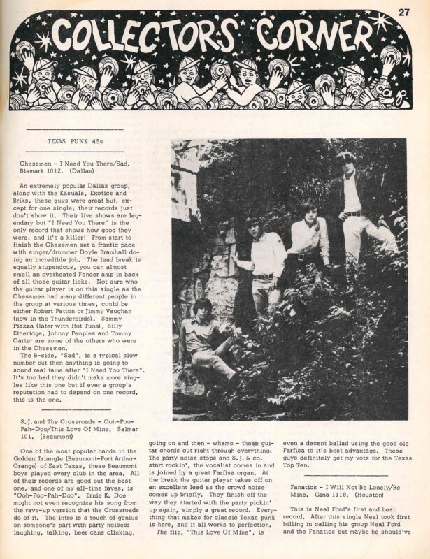 Next up is Not Fade Away, an irregularly-published (only 4 issues in 10 years!) music magazine out of Austin, Texas. The magazine was published by Doug Hanners, a record dealer who founded the Austin Record Convention and Texas Archive, a record label which reissued albums from mostly obscure Texas garage rock and rockabilly bands. The issues of Not Fade Away focused mainly on Texas-based punk and garage rock bands, such as the 13th Floor Elevators, Roky Erickson, Kenny and the Kasuals, Shiva’s Headband, Red Krayola, Mouse and the Traps, The Bad Seeds, The Reasons Why, Larry and the Blue Notes, Lost & Found, the Sparkles, and more. When the second issue came out long after the first, the editor’s note read, “Surprise! Thought you’d seen the last of NFA didn’t ‘cha? Well, for awhile we thought so too. I want to apologize to everyone who has been waiting for this issue and thank you for your patience. We didn’t plan to publish a fanzine every year or so but that’s the way it turned out….I had no idea Texas music was as popular as it is all over the world.” (53396) $1,500