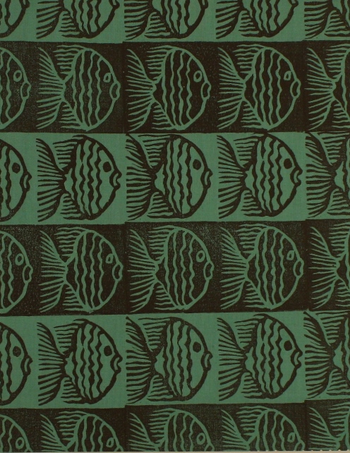 One of the production units was the blockprinting unit, which grew out of the bookbinding unit when the lead designers decided to create decorative book covers using linoleum block prints. They created patterns which the workers then transferred to linoleum blocks and cut away to create stamps. These blocks were then inked and stamped onto paper and fabric. They were designed to be labor-intensive, so as to help guarantee the women with many hours of paid work. F.A. Bernett currently has in its inventory a suite of six portfolios displaying samples of the various handmade blockprinted textiles created in the workshops of the Milwaukee Handicraft Project.